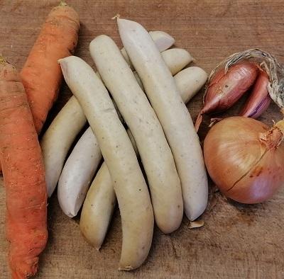 Viande de porc*, sel, poivre*, 4 épices*, boyaux naturels*