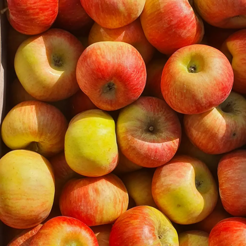 Pomme à croquer ferme, un peu acidulée, très aromatique et sucrée. En direct des vergers Grandieu à Grignoncourt (88).
