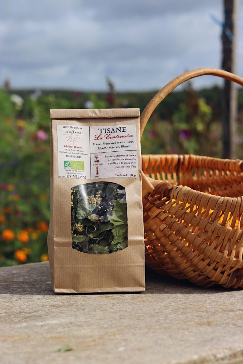Composition : frêne, cassis (feuilles), reine des prés, menthe poivrée, bleuet rouge.