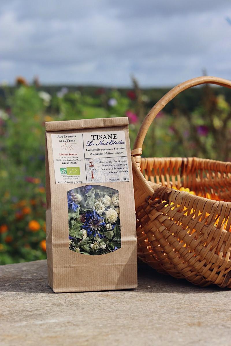 Composition : camomille romaine, verveine citronnelle, mélisse officinale, bleuet.